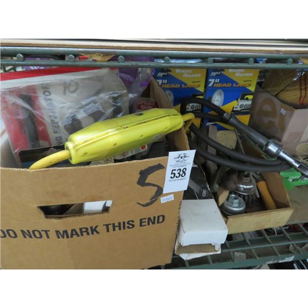 Shelf Lot of 7" Head Lamp (4), Assorted Cords, Easy Seal Clamps538 - Shelf Lot of 7" Head Lamp (4), Assorted Cords, Easy Seal Clamps