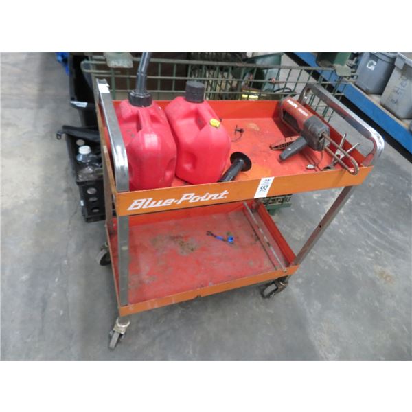 Blue Point Red Metal 2 Shelf Work Cart w/Gas Cans557 - Blue Point Red Metal 2 Shelf Work Cart w/Gas Cans