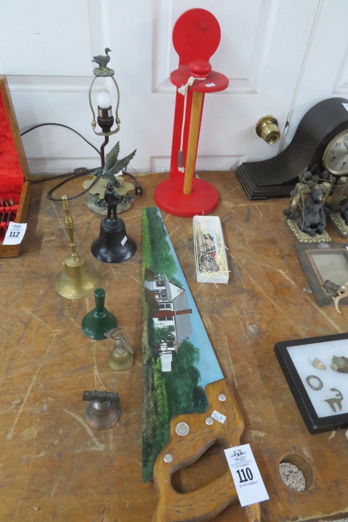 Duck Lamp, Brass Bells & Painted Saw