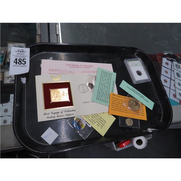 24K Goldplate Indian Head Cents, Ancient Roman Cent, Columbus Gold Stamp