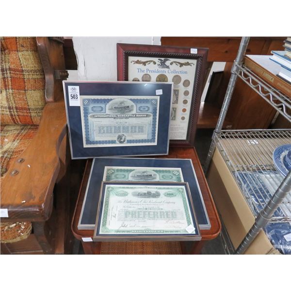Railroad & Mercantile Marine Bank Notes 3, Presidents Collection Framed Money