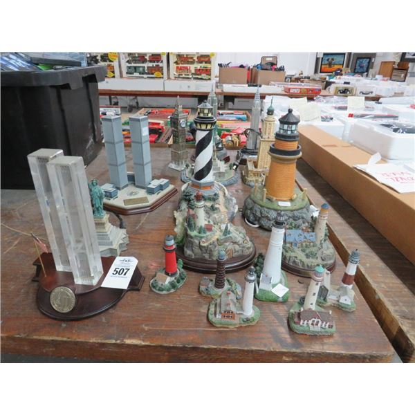 Twin Towers, Statue Of Liberty, Empire State Building, Big Ben Miniatures, Asst. Lighthouses
