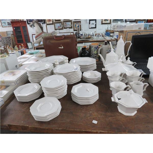 Independent Iron Stone Dish Set, Candlestick, Pitchers, Table Items