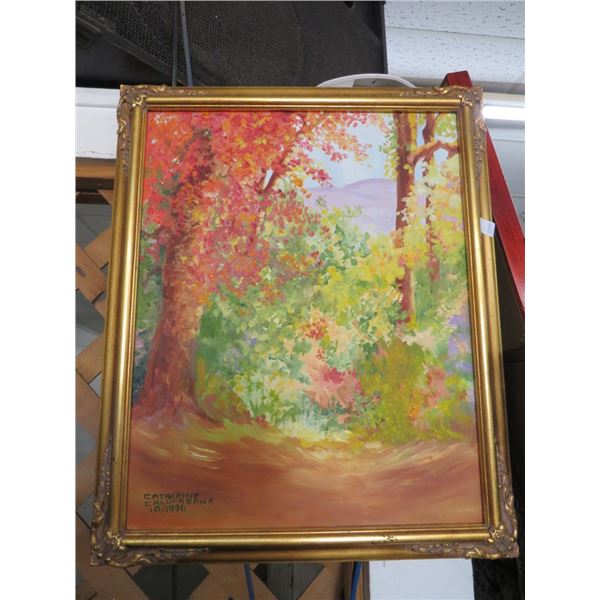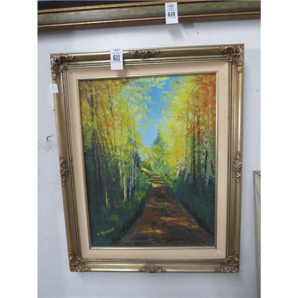 Oil On Canvas Forest Trail Wall Art - Signed Makres - 24 x 30