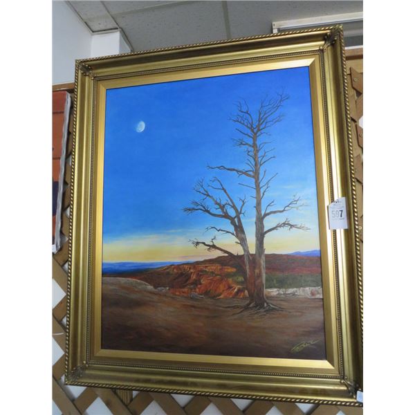 Oil On Canvas Framed Dessert Art - Signed Makres