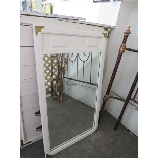 White Painted w/Brass Hardware High Boy, Dresser, Nightstand, Mirror Set