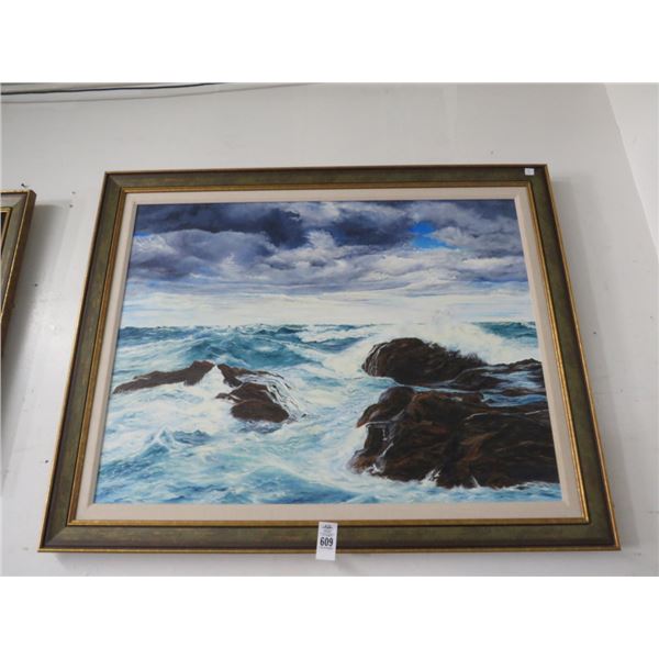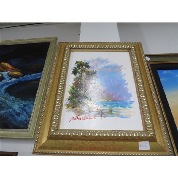 Framed Oil On Canvas Seascape/Forest Scene - 2