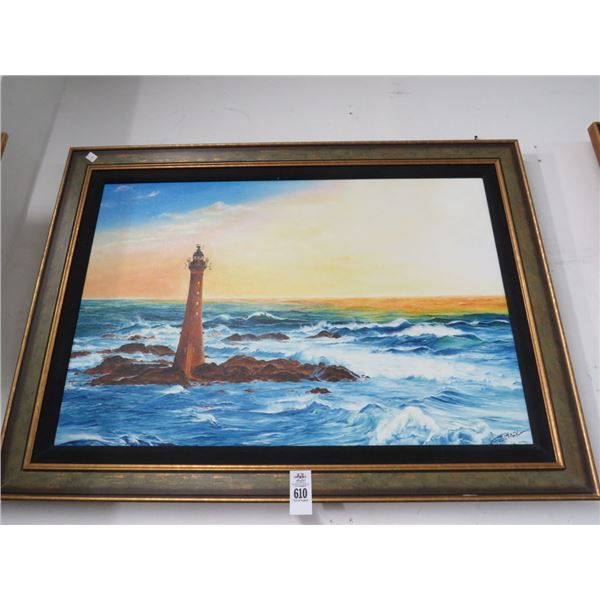 Oil On Canvas Lighthouse - Signed Makres - 30 x 36