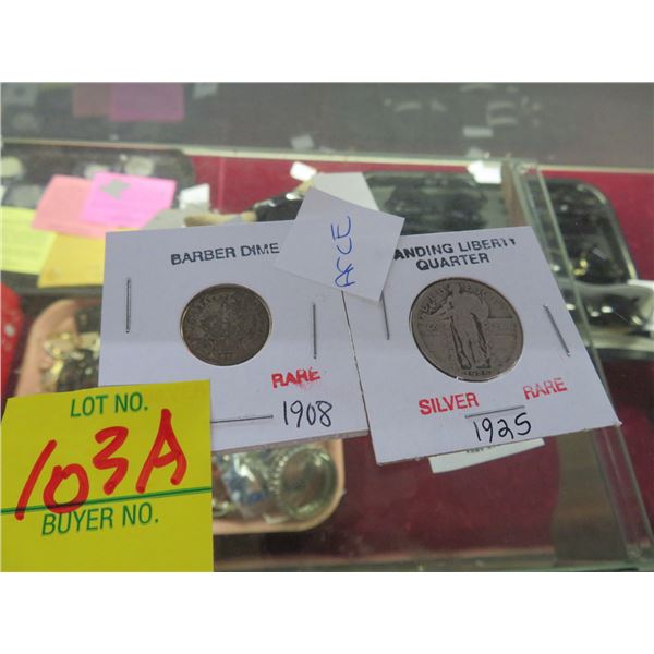 1925 Standing Liberty Quarter, 1908 Barber Dime