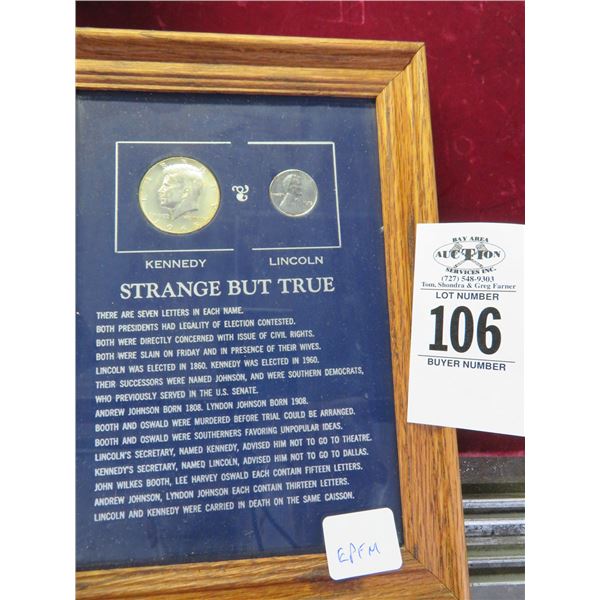 Kennedy/Lincoln Framed Coins w/Strange But True Memorabilia