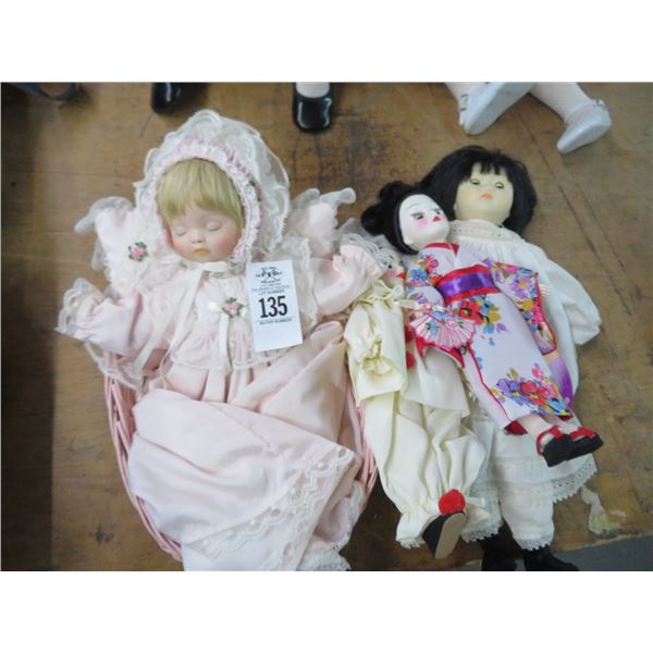 Porcelain Baby Doll in Basket, Clown Doll, Oriental Dolls (4)