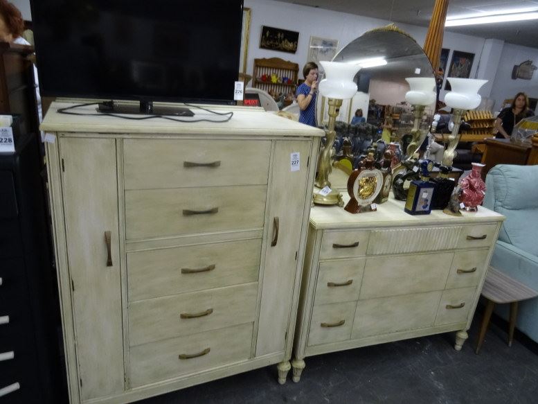 Early Wood Dresser, Mirror & Gentlemans Chest