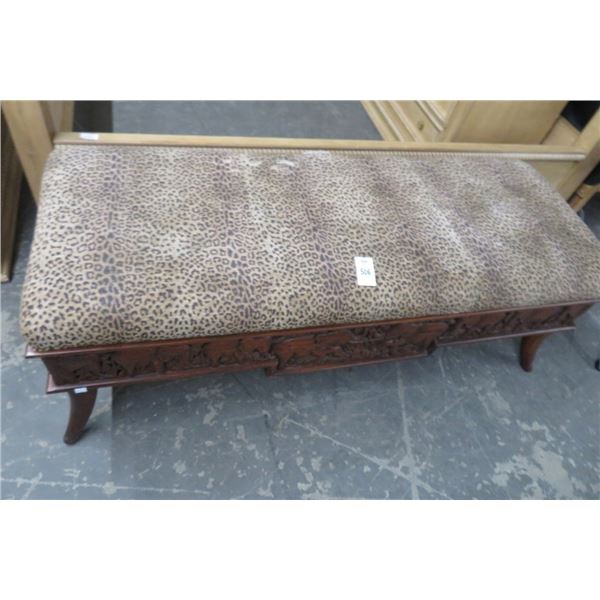 Mahogany Carved Elephant Motif Foot of the Bed Bench
