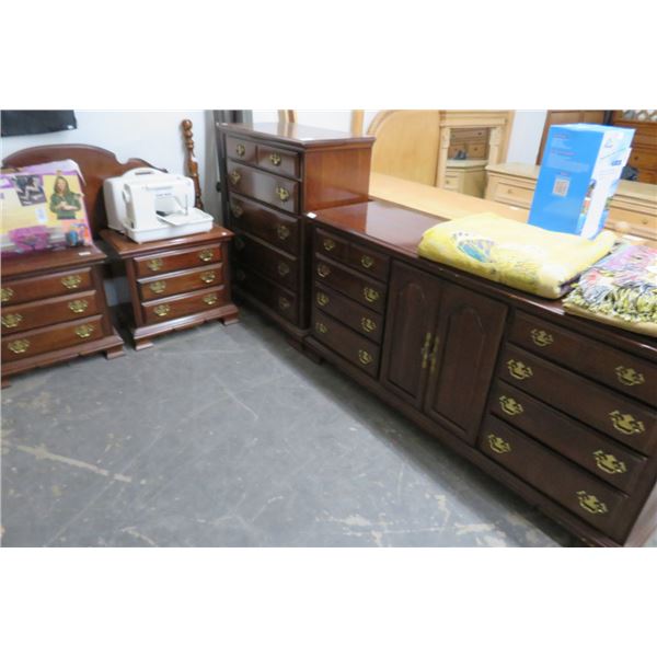 Kincaid Mahogany Brass Accent Full Bed, Highboy, Dresser & 2 Nightstands