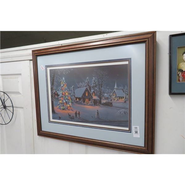 Framed Artist Signed & Numbered Snowy Cottage - 36" x 28"