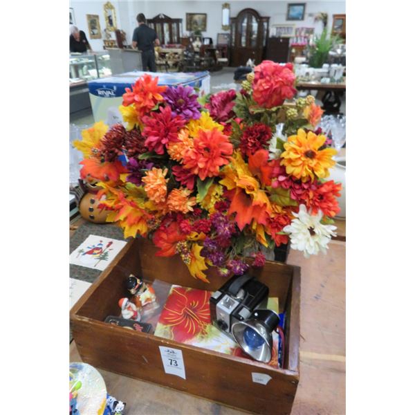 Wood Box w/Vintage Camera & Décor
