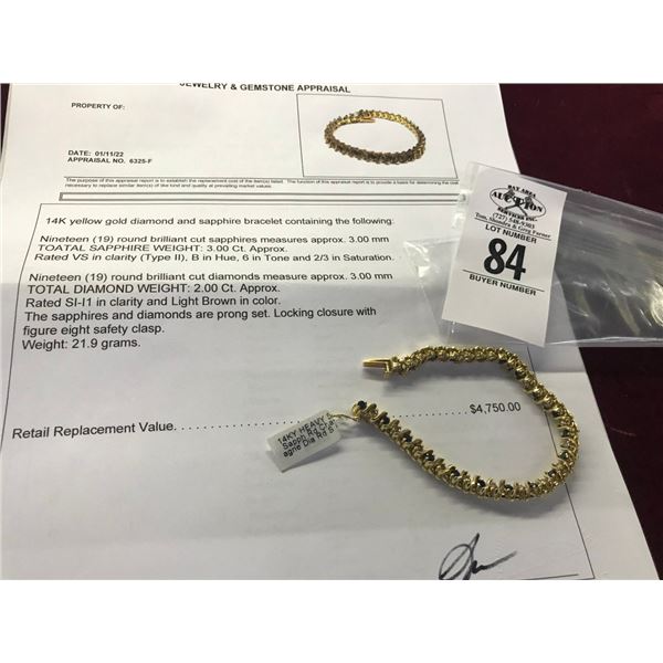 14K YG Diamond & Sapphire Bracelet - 19 Round Sapphires/Diamonds 21.9g (Retail Value $4,750.00)84 - 14K YG Diamond & Sapphire Bracelet - 19 Round Sapphires/Diamonds 21.9g (Retail Value $4,750.00)