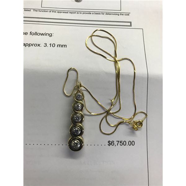 14K YG Diamond Pendant - 5 Round Diamonds 12.6g (Retail Value $6750.00)