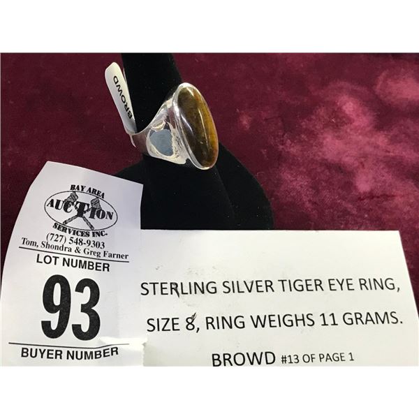 Sterling Silver Tiger Eye Ring 11g93 - Sterling Silver Tiger Eye Ring 11g
