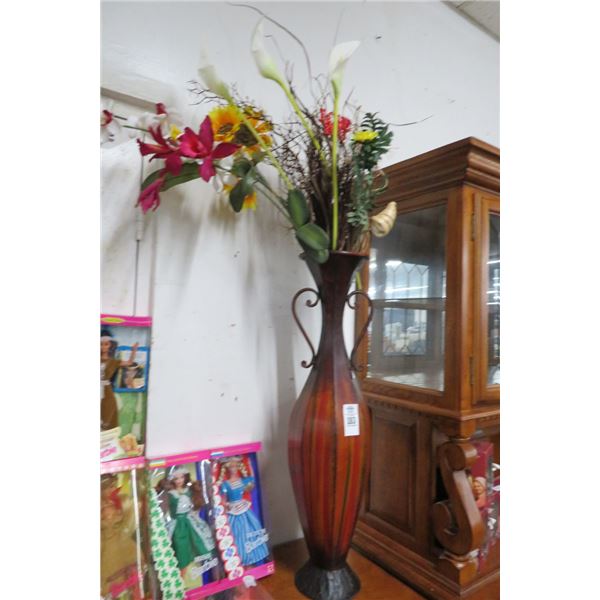 Orange/Red Striped 33" Vase w/Silk Flowers183 - Orange/Red Striped 33" Vase w/Silk Flowers