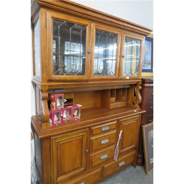 Burled Wood Domed 4 Over 4 China Hutch147 - Burled Wood Domed 4 Over 4 China Hutch