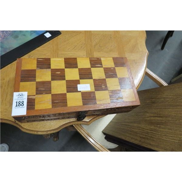 Fold Up Wood Carved Chess Board w/Carved Chess Pieces188 - Fold Up Wood Carved Chess Board w/Carved Chess Pieces