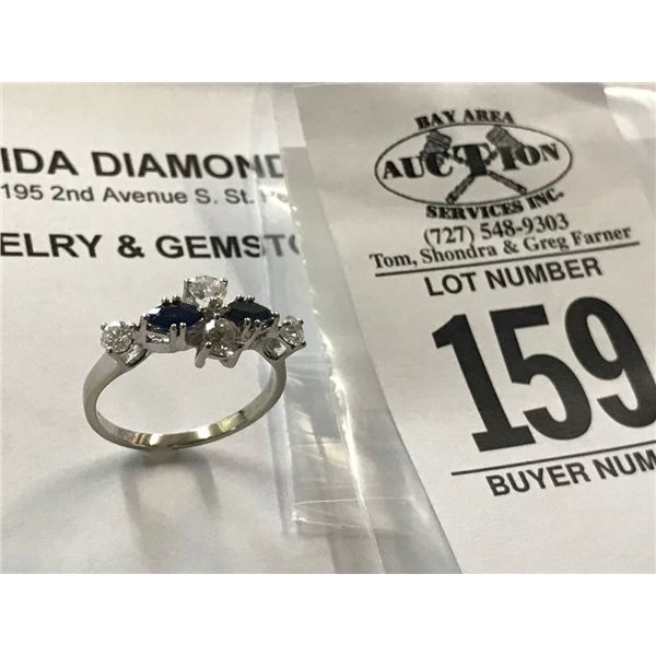 18K WG Sapphire & Diamond Ring - 2 Marquise Sapphire  4 Diamonds 2.7g (Retail Value $1,850.00)159 - 18K WG Sapphire & Diamond Ring - 2 Marquise Sapphire 4 Diamonds 2.7g (Retail Value $1,850.00)