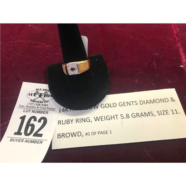 14K YG Gents Diamond Ring & Ruby Ring 5.8g162 - 14K YG Gents Diamond Ring & Ruby Ring 5.8g