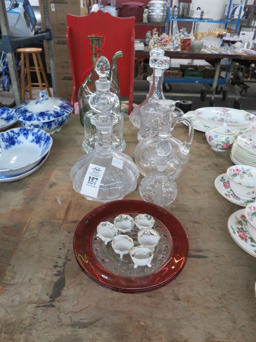 Etched and Asst. Pitchers, Decanters, Art Glass Dishes