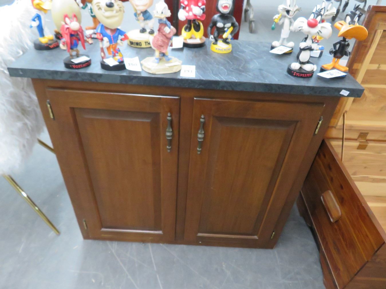 Faux Granite Top Mahogany 2 Door Cabinet