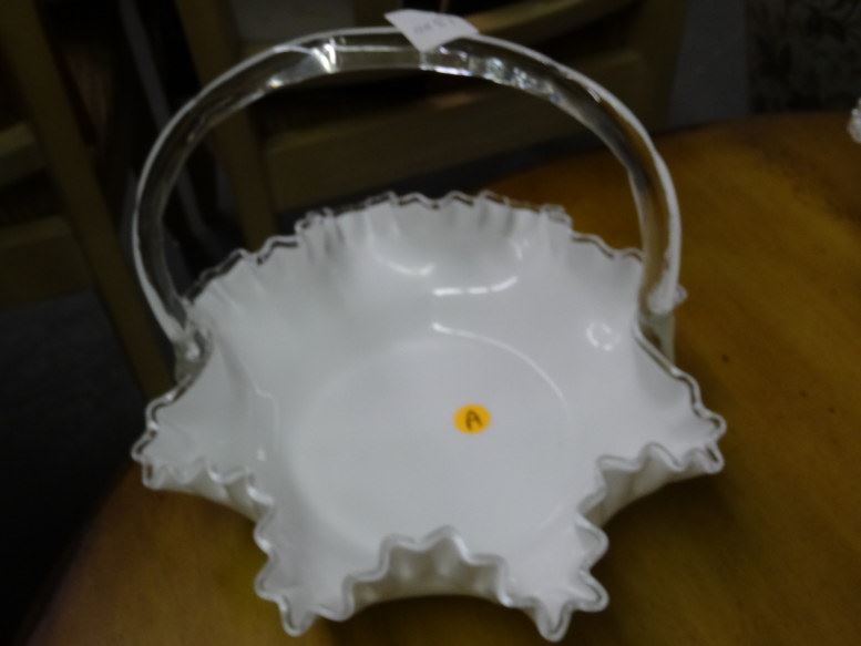 Fenton Ruffled Glass Basket Dish - No Shipping