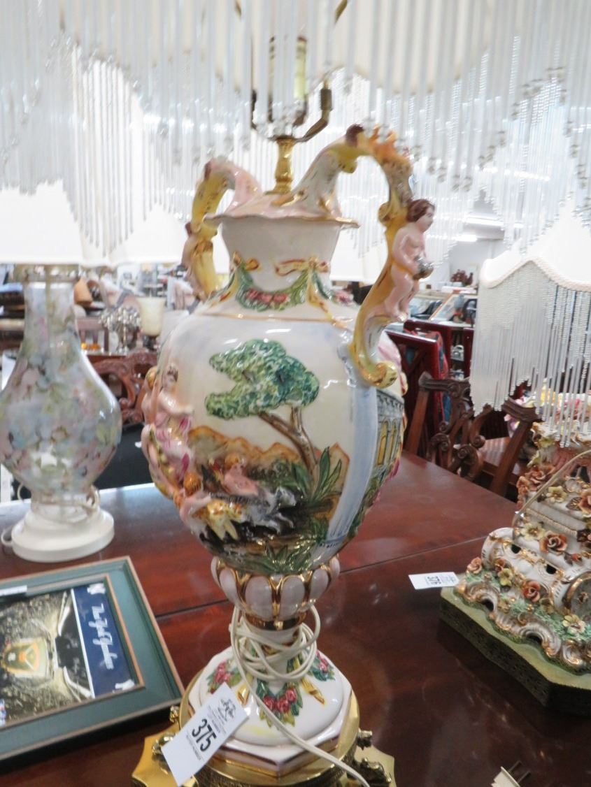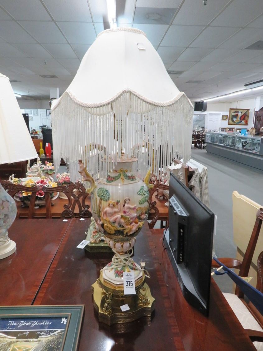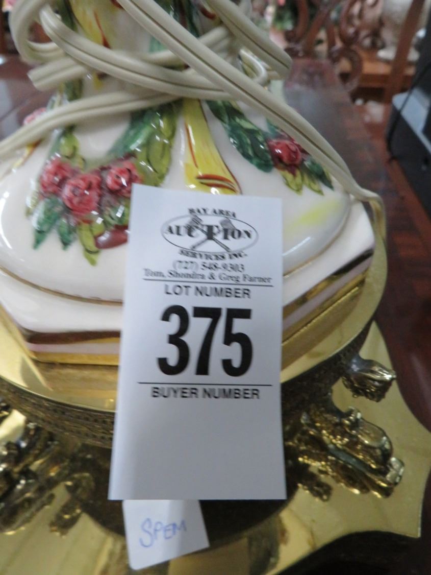 Figural Painted Brass Base Urn Lamp w/Bougie Shade