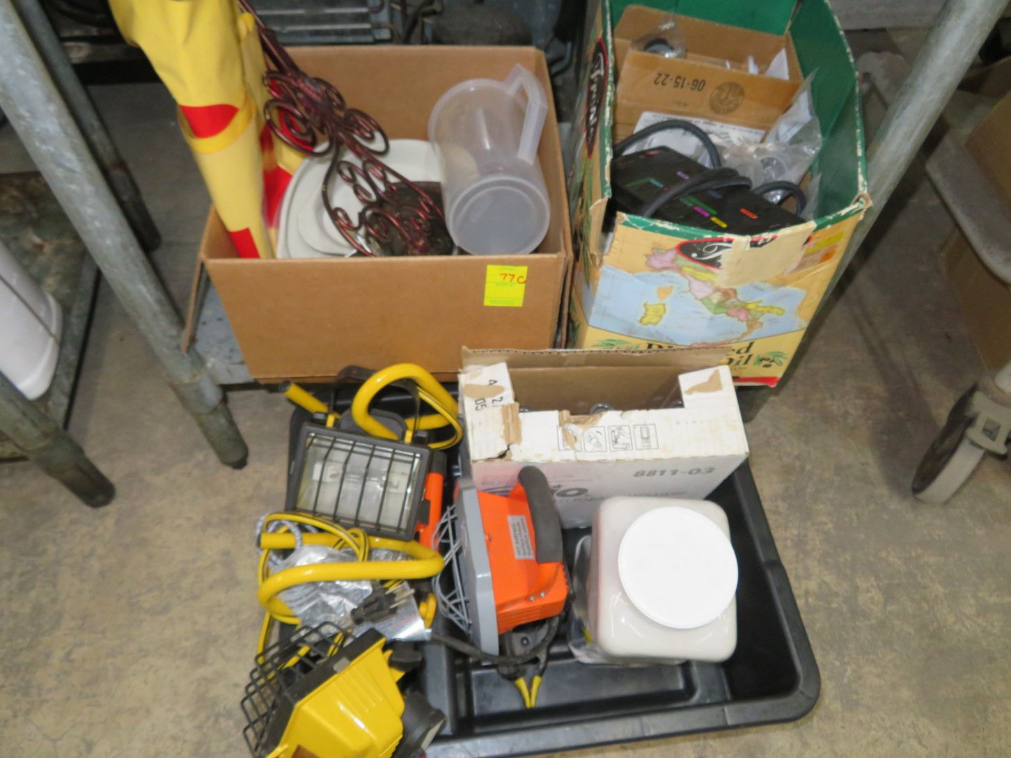 Flood Lights, Cord Splitter, Hand Cleaner, Dishes, Supplies