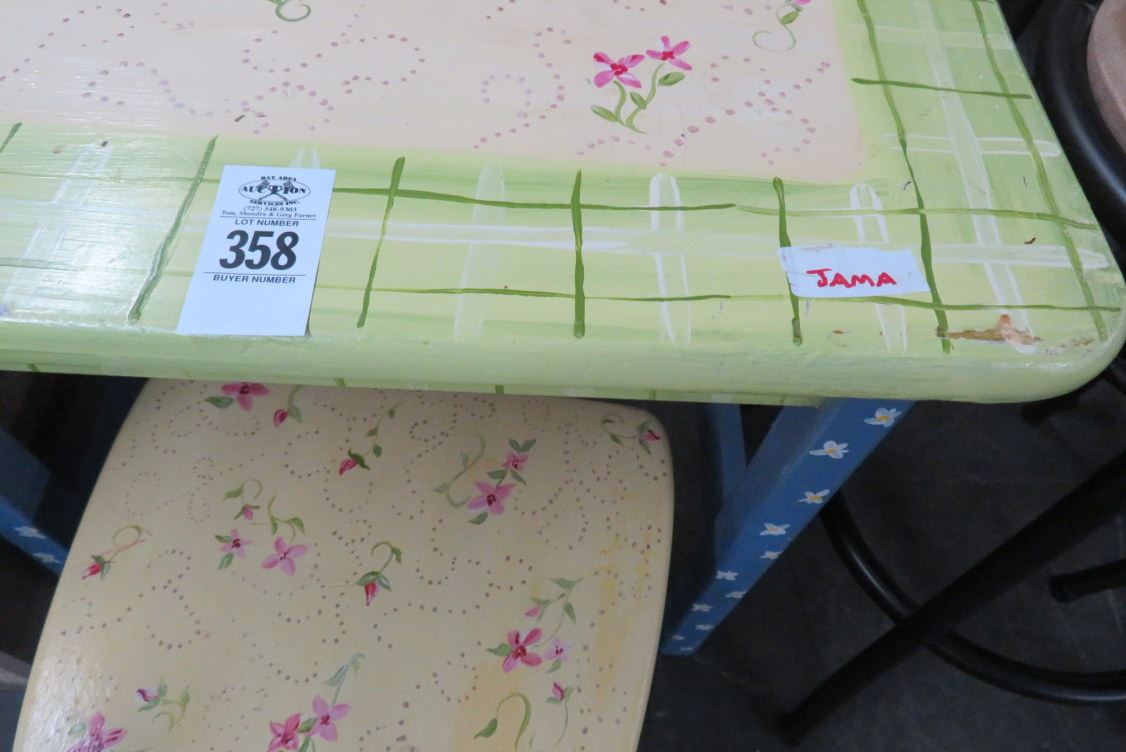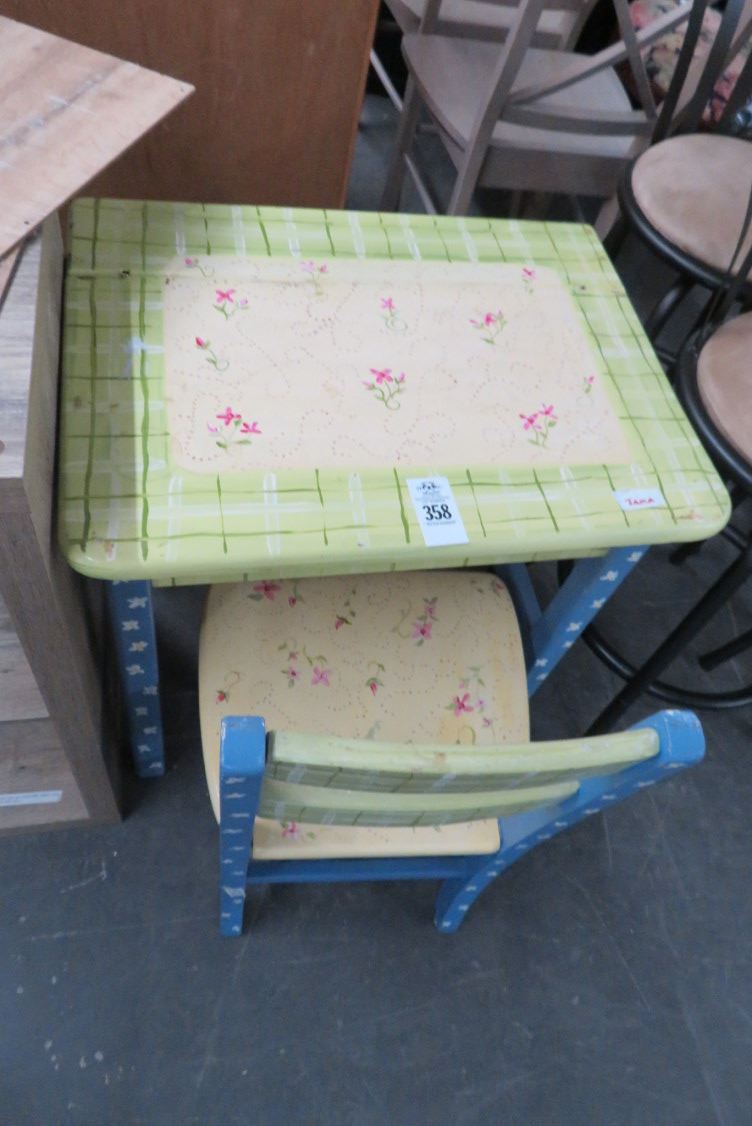 Floral Painted Wood Childs Desk & Chair