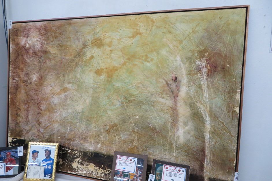 Framed Abstract Oil On Canvas 73" x 50" Damage At Bottom