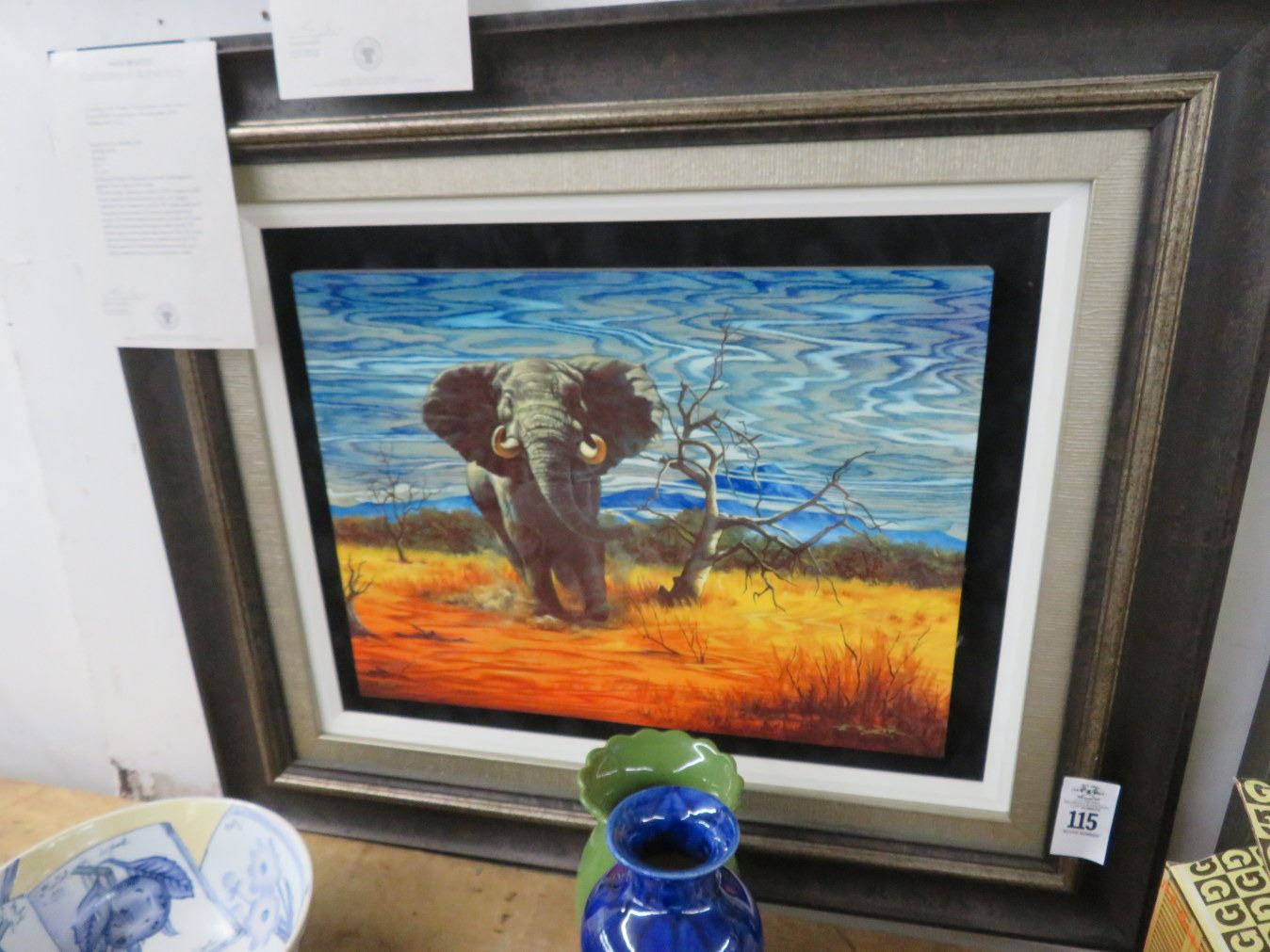 Framed African Elephant Print on Metal Signed Matt Beyrer - 20 x 24
