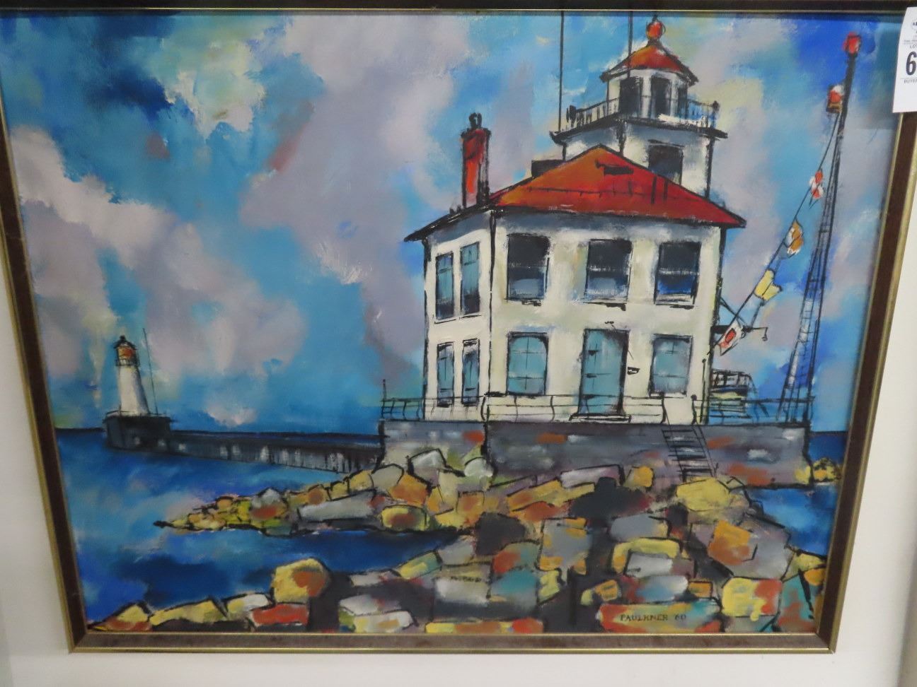 Framed Art On Board "Lighthouse" By Faulkner - 22" x 28"