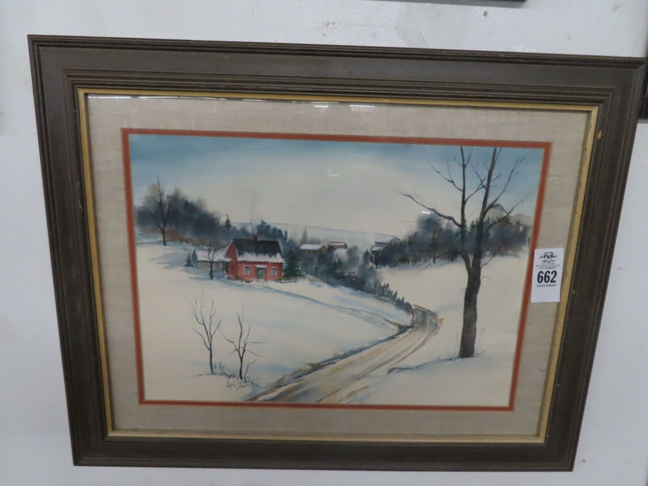 Framed Art "Snowy Town" By ? - 22" x 28"