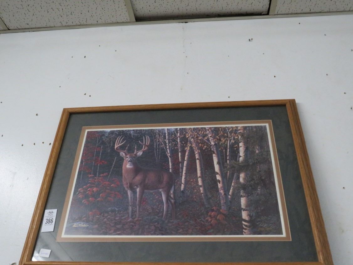 Framed Art of Deer In Woods - Artist Signed - 24 x 30