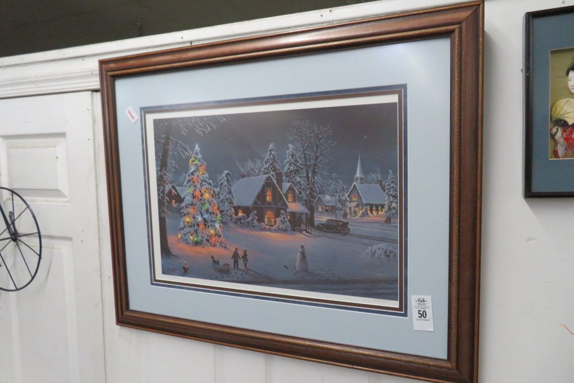 Framed Artist Signed & Numbered Snowy Cottage - 36" x 28"