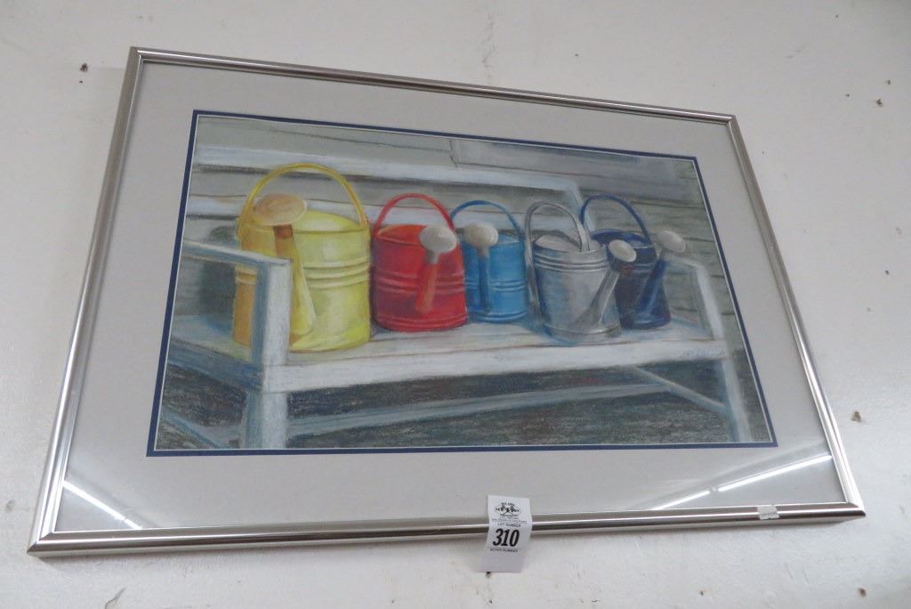 Framed Artist Signed Watering Pail Print 29" x 21"