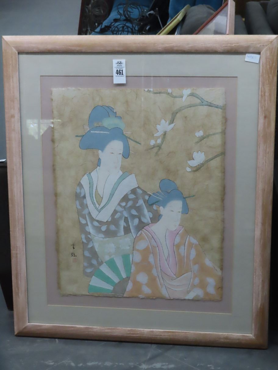 Framed Asian Painting on Rice Paper - 40" x 33"
