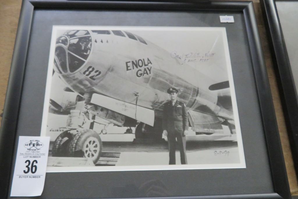 Framed Autographed Enola Gay w/Pilot Photo - 14" x 13"