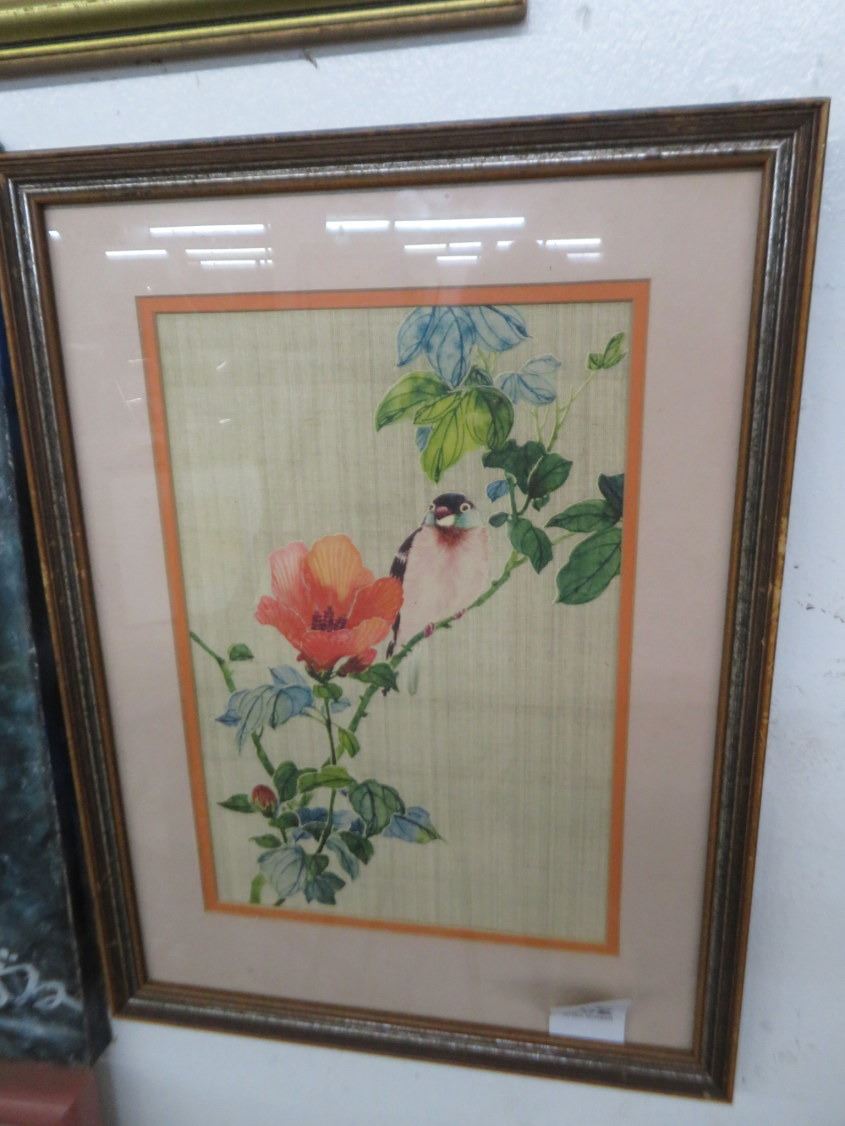 Framed Bird Floral Motif Tapestry - 18" x 13"