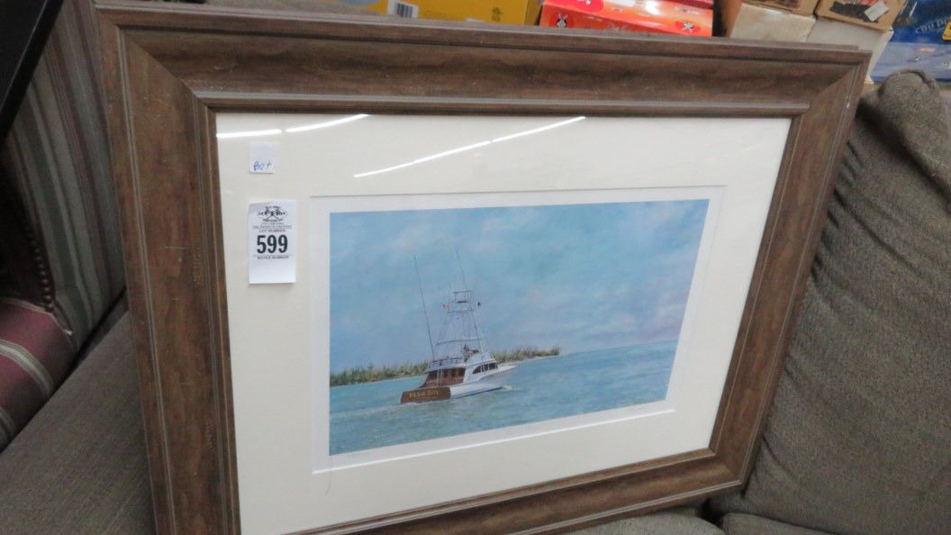 Framed Blue Boy Fishing Boat Print - 29" x 23"