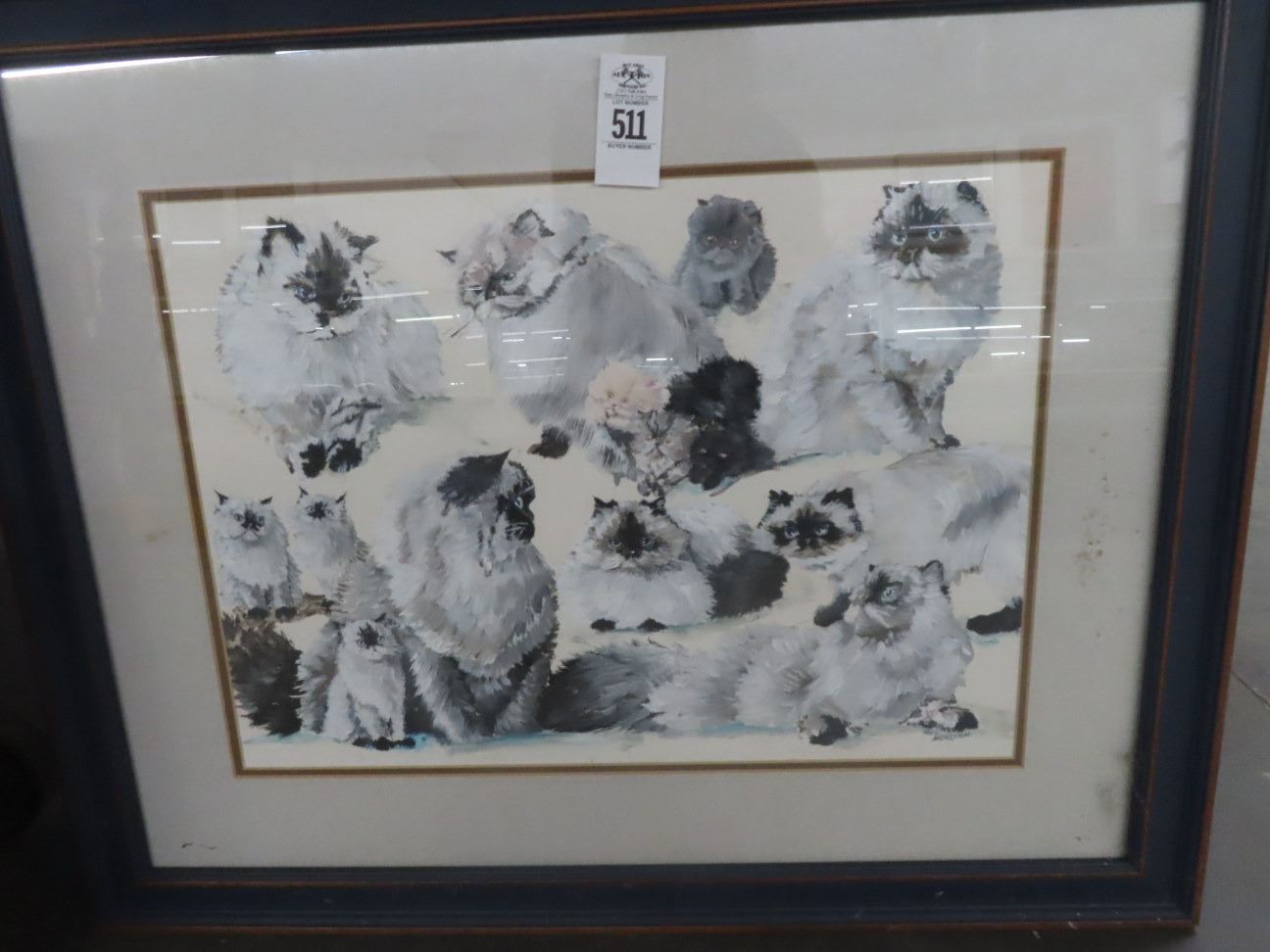 Framed Cat Family Gathering Print - 32" x 27"