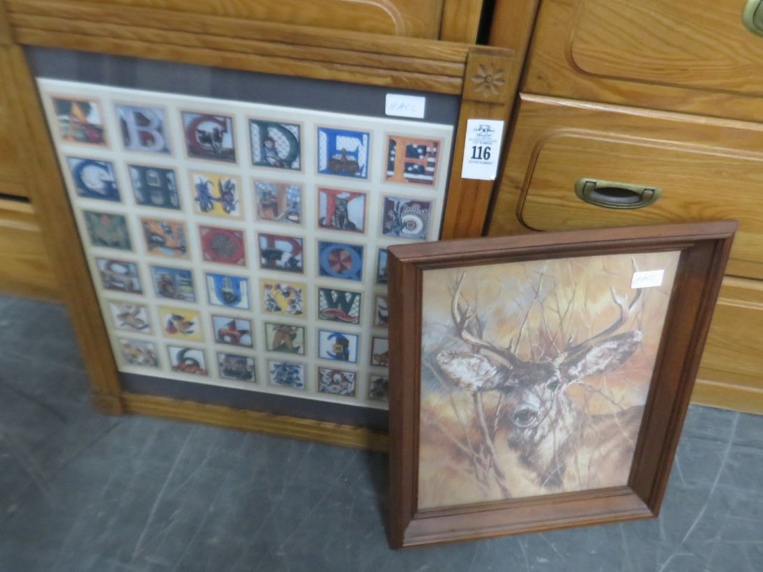 Framed Deer & Alphabet Prints (2)