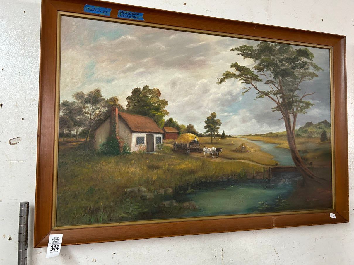 Framed Farm On River Oil On Canvas Wall Art - Edith Lee - 36 X 40