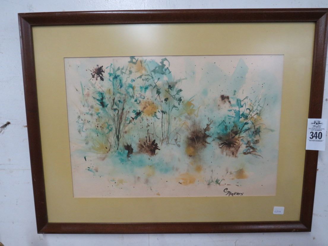 Framed Floral Watercolor - Signed Makres - 20 x 24
