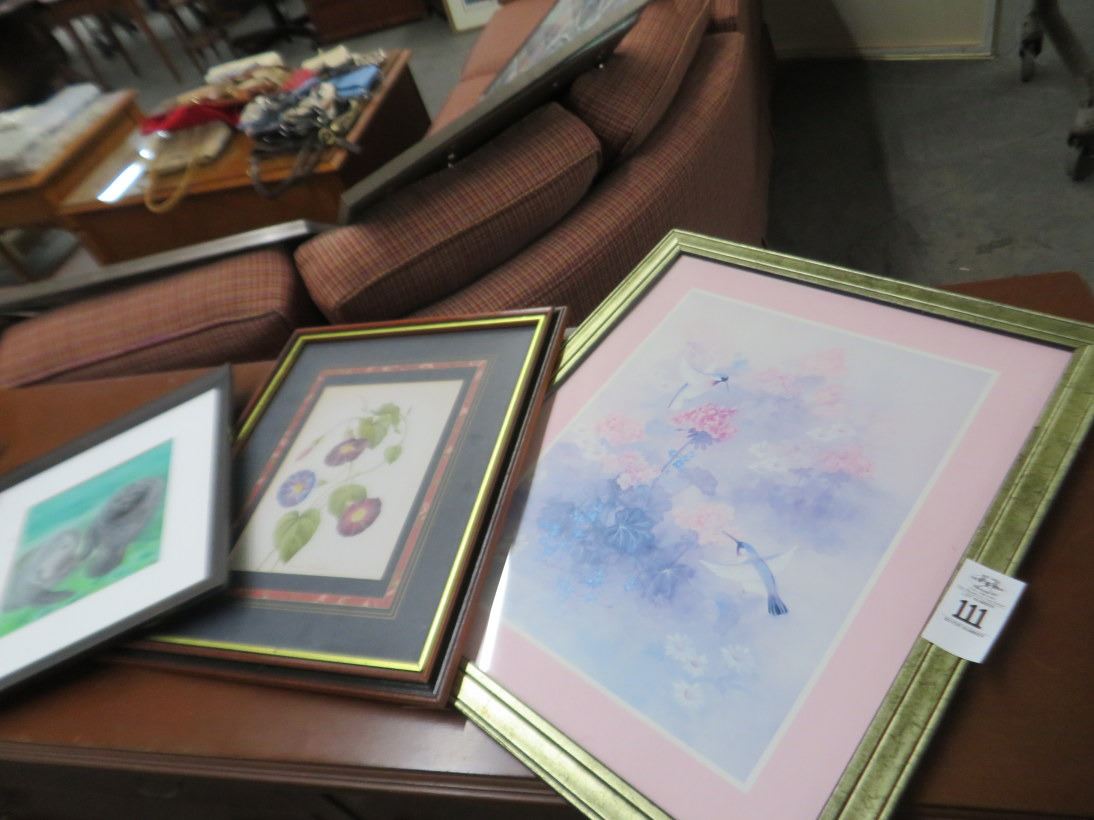 Framed Hummingbird, Flower & Manatee Prints (3)